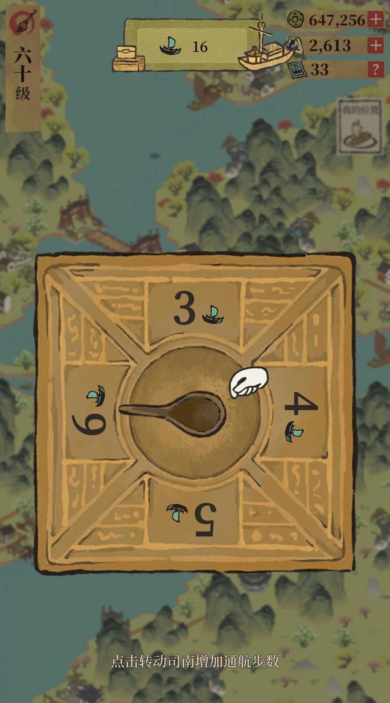 每次转动司南会消耗一件物品,随机获得3、4、5或6点通航步数,每种步数获取概率均为25%。