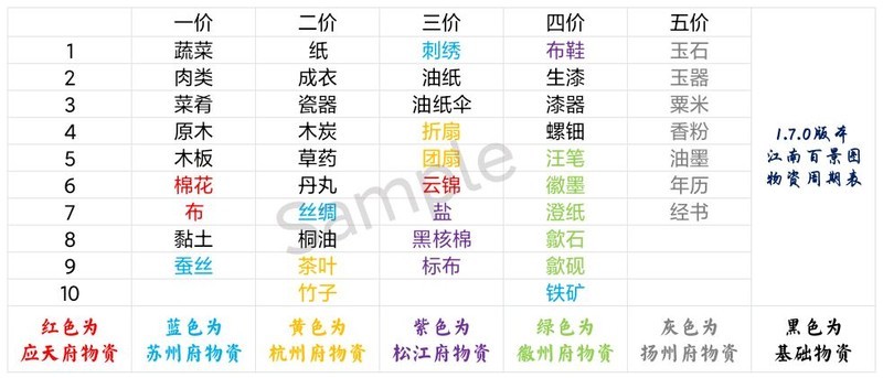 物资周期表更新至1.7.0版本