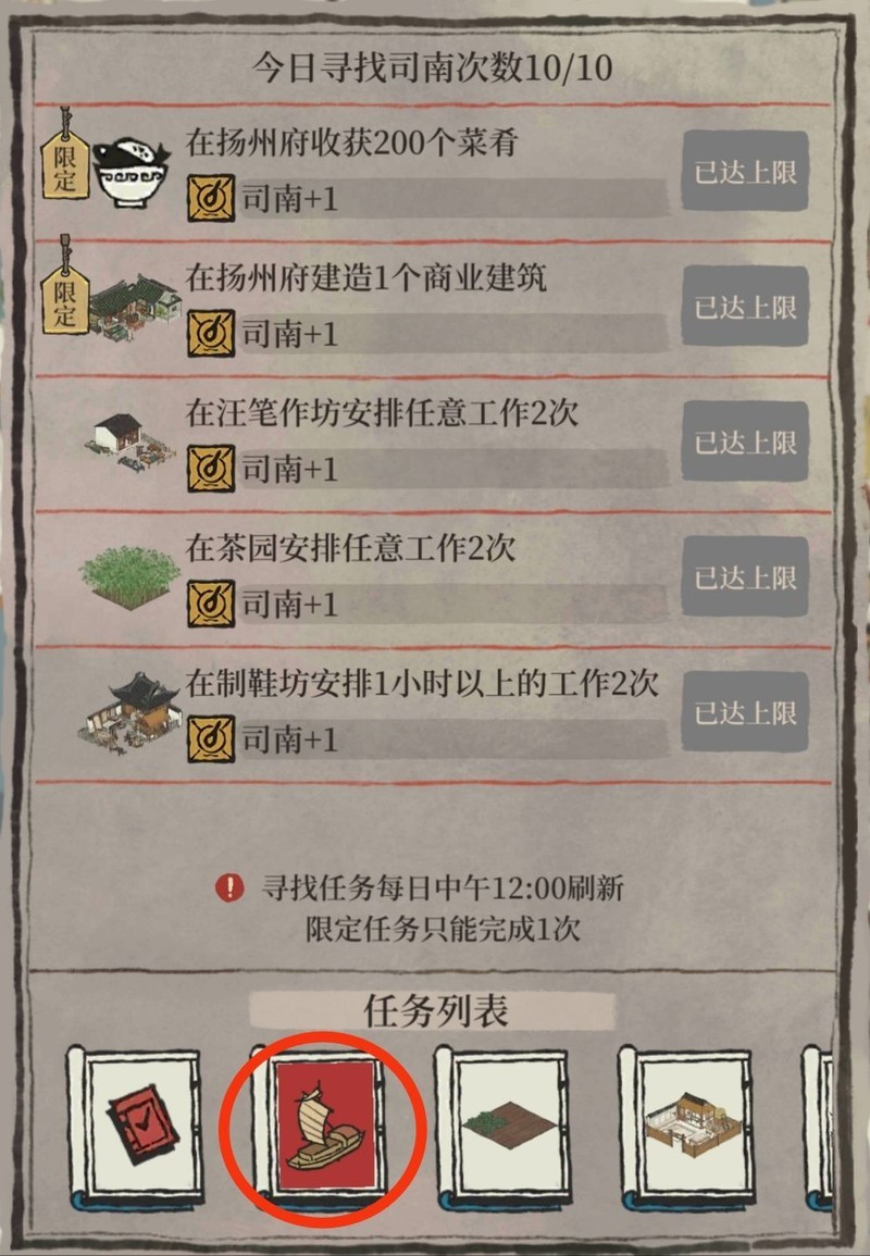 司南可通过完成府城任务获取,各府城任务列表中均可查看。每日最多可获得10个司南,任务及获取上限于每日中午12点重置。限定任务仅可完成一次,非限定任务可重复进行,直至达到当日司南获取上限。