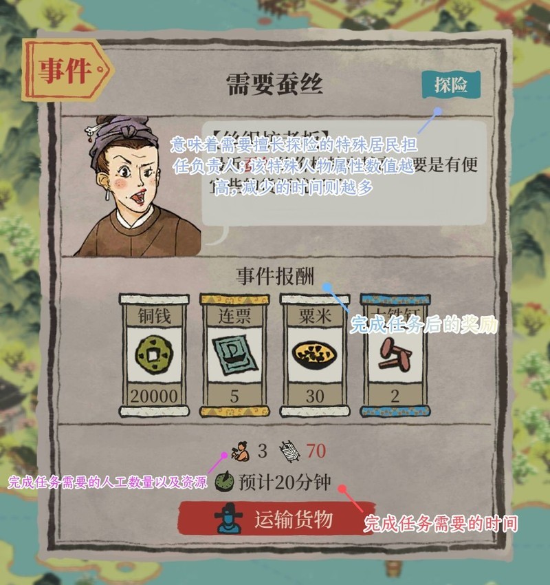 具备高探险属性或特殊天赋的角色,如节省时间的仇珠、徐霞客,或擅长省钱的专珍玄奘、温庭筠、沈万千。近期活动可兑换玄奘专属珍宝般若经,参与松江府探险活动今夕何夕即可获得三枚金豆,恰好用于将般若经升至满级,最大程度节省资源。