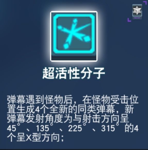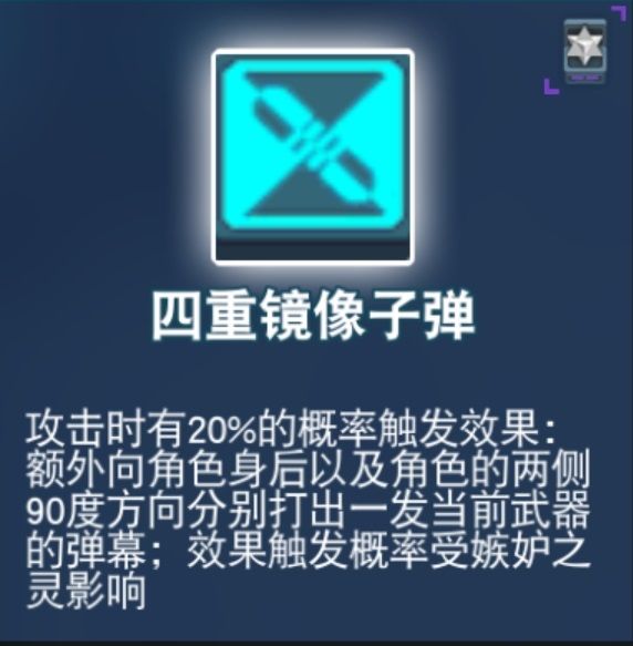 打小怪时子弹分裂能造成范围伤害,对付某些Boss时分裂子弹还能直接打在Boss身上,相当于输出提升了4倍!如果你喜欢用激光之类的武器,那当我没说。