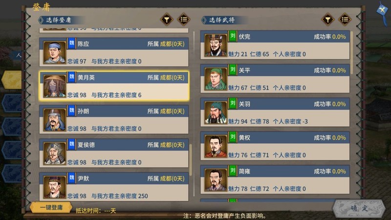 招人时优先选择马超,接着挑选刘备宗族成员,别忽视概率。