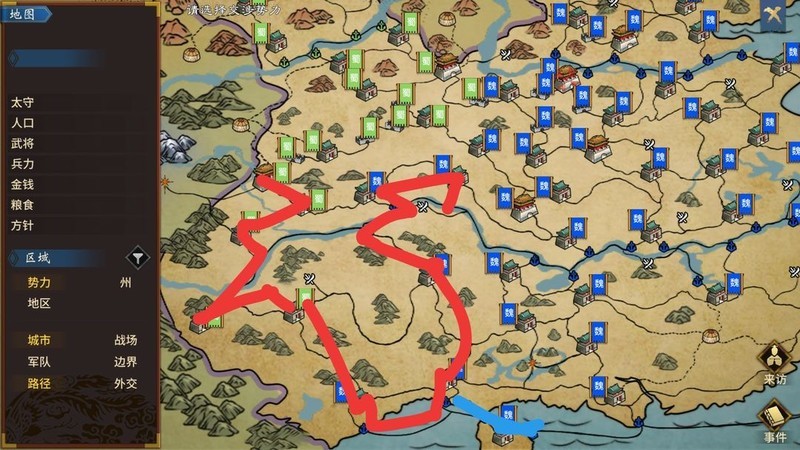 西北地区恰有三个关口,攻下后即可占据,逐步夺取所有城池。