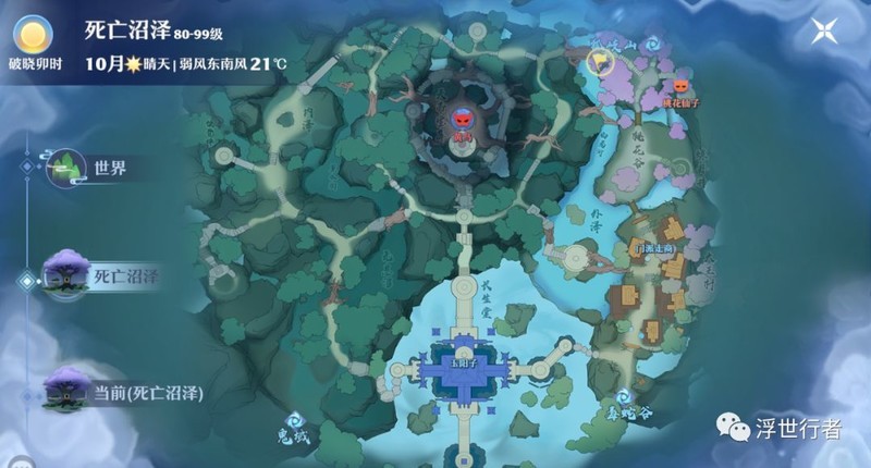 白天无论晴雨或雪天(小雨暴雨小雪大雪均可),在死亡沼泽北边桃林的白马河畔旁有机会进入幻境。