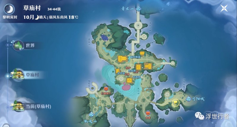 晴天夜晚在草庙村右下角官道南侧(龛底甬道)可进入幻境。