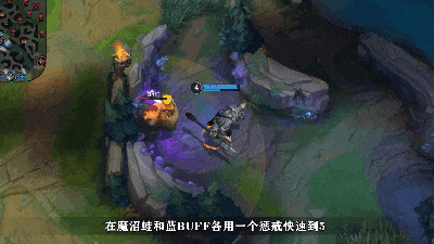出门先买长剑,随后在自家蓝BUFF附近的魔像草丛放置假眼以防被敌方干扰。接着学习Q技能,前往上方的石甲虫处开启野区路线。19秒时即可开始蓄力,第一时间释放满蓄力Q技能,并配合惩戒迅速清完野怪升至2级,随后学习W技能,立即转战下方的红BUFF继续清理。
