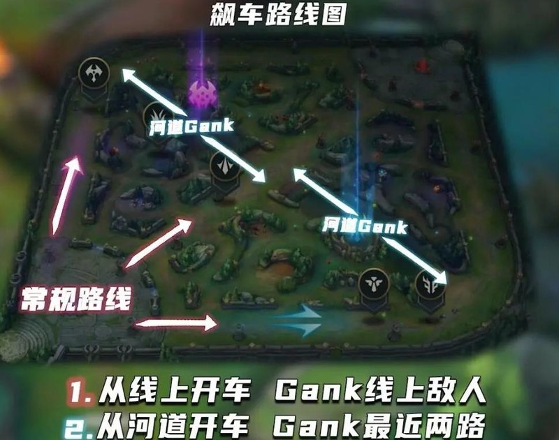 赛恩常用的Gank路线有两条,但由于其大招附带提示音效和靠近敌人时屏幕出现的红光特效,对手往往能提前察觉并成功躲避。