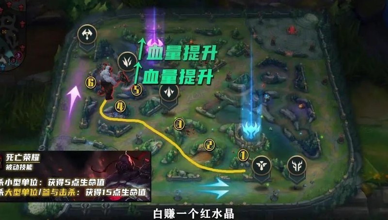 赛恩击杀小兵可增加5点最大生命值,消灭攻城车、大型野怪或参与英雄击杀则增加15点最大生命值。