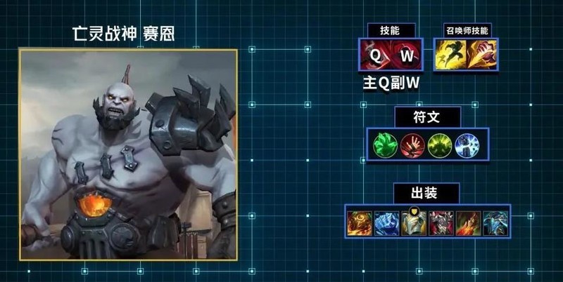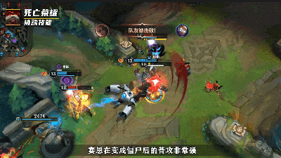 赛恩死亡后进入僵尸状态,普攻威力大增。阵亡前可先用Q、E技能减速敌人,复活时触发恐惧效果,借此强势反杀对手。