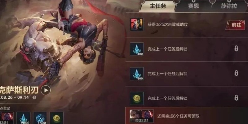 想免费获得诺克萨斯的强力英雄赛恩或莎弥拉吗?在9月14日23:59前,参与诺克萨斯利刃活动,完成所有主线任务,即可从两位英雄中任选其一,更有丰厚奖励等你来领取,畅享激爽战斗体验!