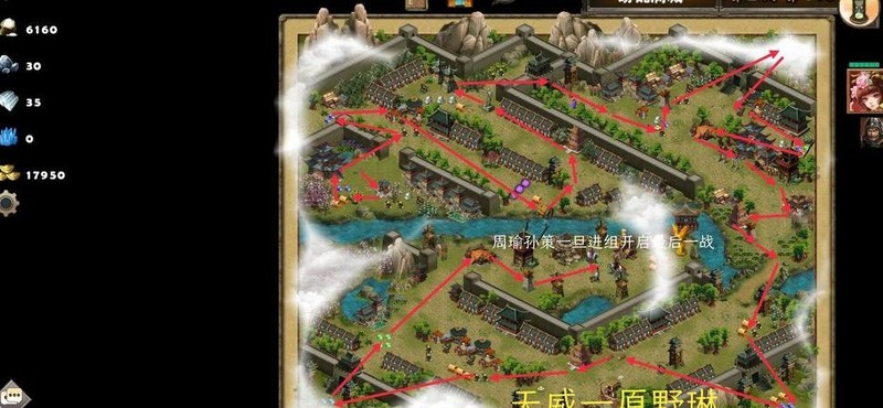 开局后先清理小乔周围的资源,拾取所有属性增益。出门向左转,获取两颗全属性宝石,随后向下推进,击败第一个拦路武将。紧接着向上前往雕像与法师营区域,招募红法师职业单位,并继续深入地图。击败第二个拦路武将后,拾取地面所有增益效果,随后转向右侧城外区域,获取额外属性加成。返回最初入口,进入下方通道取得隐藏宝石。接着前往擂台选择提升体质,占领城楼后进入寺庙提升智力,同时不遗漏左侧的属性奖励。击败第三个拦路敌人后,一路向南出城收集属性增益,再向左行进,沿途拾取资源并再次于城外获取属性提升。完成全部准备后,向上进入最终区域,途中可招募凤凰单位,所需水晶可在外部市场兑换获得。集齐战力与资源后,与周瑜、孙策对话,使其加入队伍,激活最终关卡。挑战最终BOSS,成功击败后即可通关。整个流程注重资源最大化利用,合理规划行进路线,确保角色属性全面强化,为决战做好充分准备。