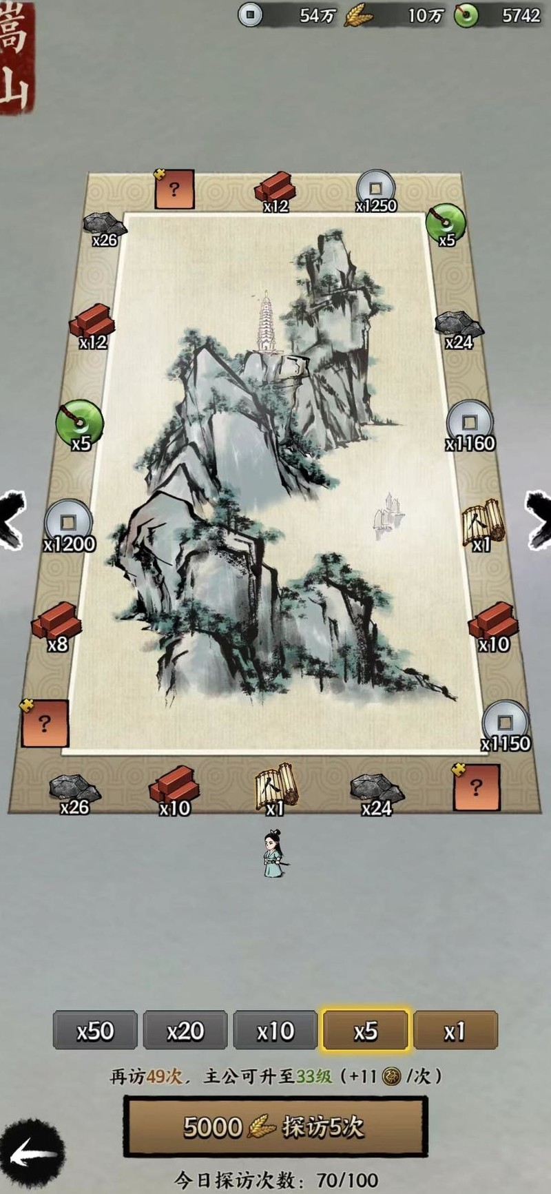 类似游戏中的扫荡功能,卡关时可通过探访获取经验、矿砂、铢钱等奖励。每个探访点每日可进行100次,建议每天刷满,粮草及时使用,避免积压浪费。