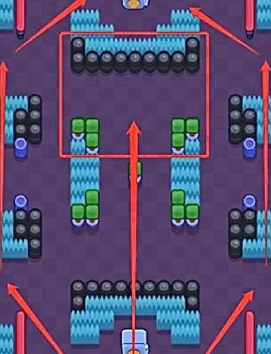 在该阵容的战术安排中,中路巴利可适当向左路靠近,配合公牛形成联动压制。右路的达里尔主要任务并非频繁参战,只需进行少量普攻即可借助机制快速积攒超级技能能量。一旦超级技能充能完成,他便可迅速从右路发起突袭,直扑敌方保险柜区域。左路与中路的对线表现固然重要,但整体节奏更多依赖右路的时机把握。当中路和左路建立优势时,达里尔应抓住机会前压,无需执着于击杀对手,重点在于利用高效充能机制快速逼近并冲击保险柜。若左中两路未能打开局面,达里尔则转为防守姿态,凭借自身较强的生存能力稳住阵线。完成防守后,其超级技能通常也已准备就绪,此时立即发动冲锋,打乱敌方部署。整体而言,这是一套前期偏稳健、后期极具爆发力的进攻型阵容,讲究蓄势待发,一旦时机成熟,便以雷霆之势扭转战局。