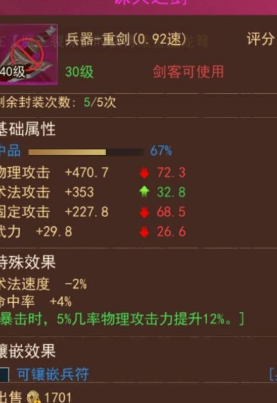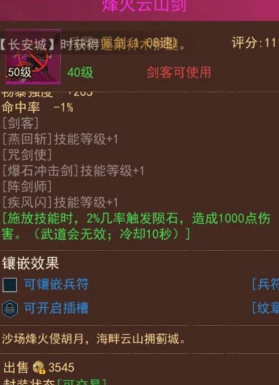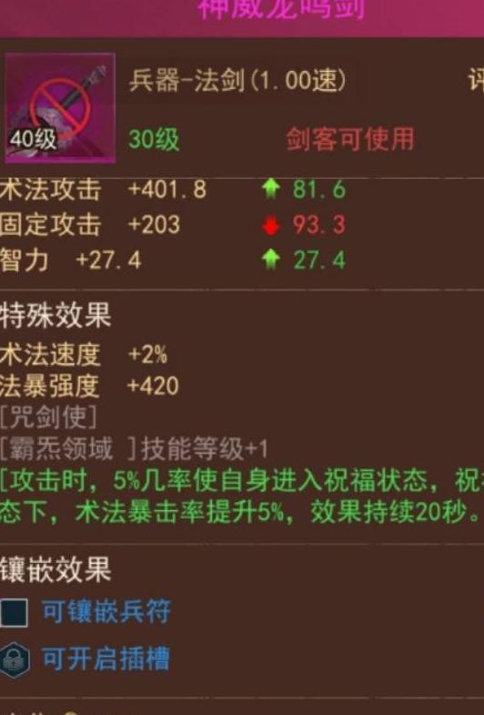 咒剑士:推荐烽火云山剑与神威龙鸣剑。烽火云山剑性能强劲但价位偏高,神威龙鸣剑同为40级装备,属性卓越,获取成本低,综合表现优异,适合预算有限的玩家选用。