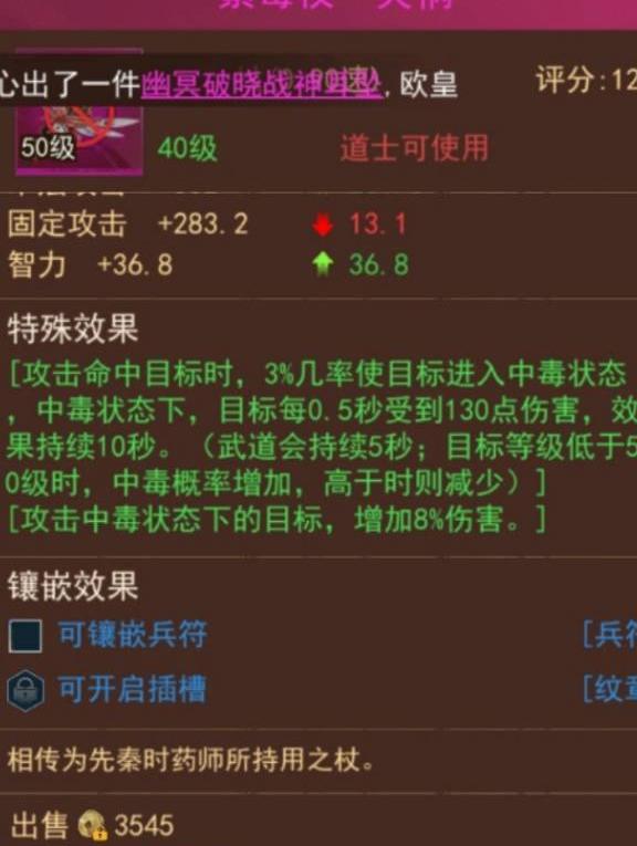 四、天师篇:推荐首选落雷王杖,性价比突出,价格适中,能提升两级大招等级并附带攻击特效,实用性高。紫毒杖虽有属性加成,但易与遗迹项链产生冲突,不过可通过更换项链规避,灵活性尚可。素问无尘拂尘控制能力出色,对怪物限制显著,但拍卖行稀有,多为极品装备,获取难度大。若考虑长期发展,紫毒杖并非最优选择,建议根据实际配置权衡替换,优先确保技能与属性协同。