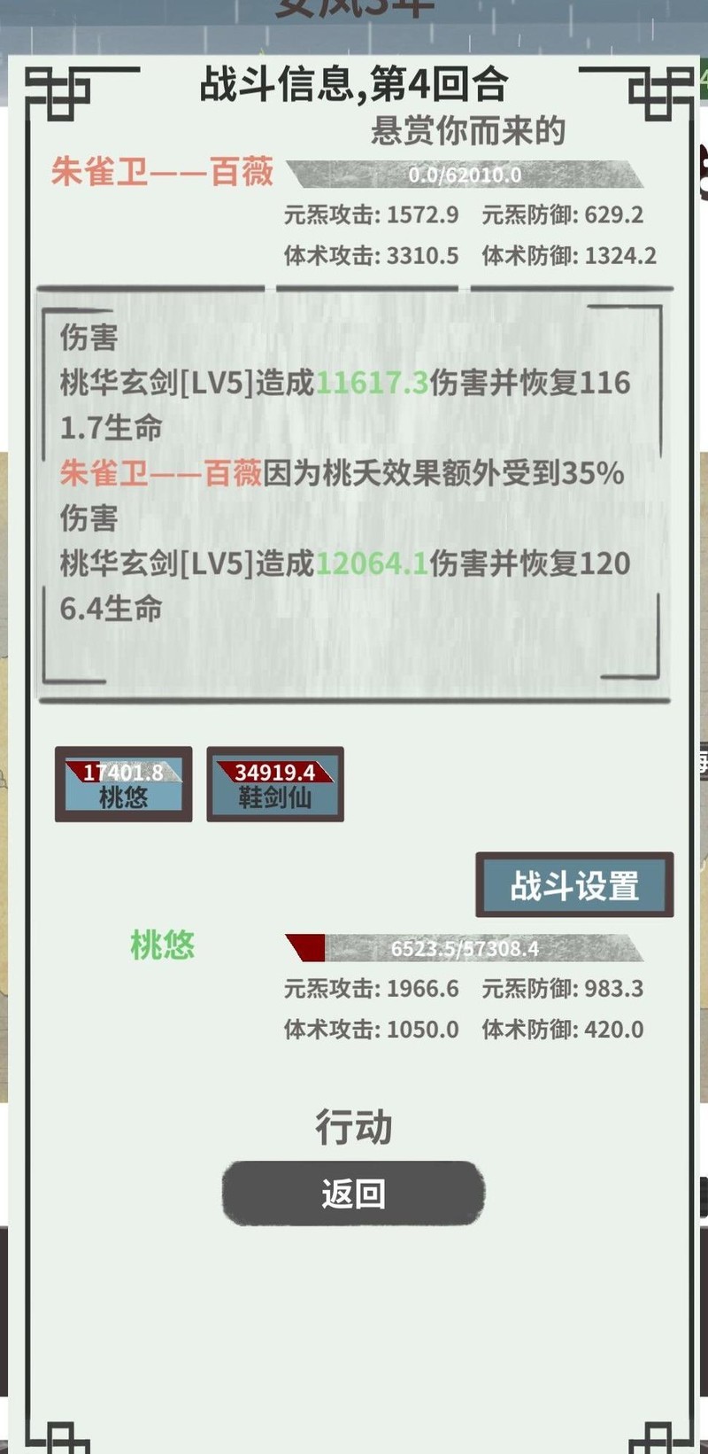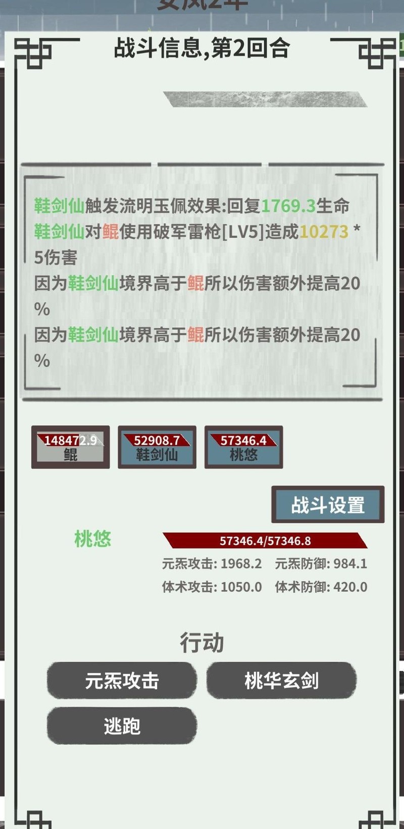 桃悠使用鲲时,普通攻击伤害在一万三到一万六之间,释放桃华玄剑可造成四段伤害并回复一定生命。