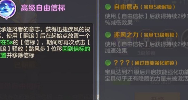进入升级阶段后,需消耗不同品质的风之意志以提升升级进度,各品质所提供的进度值有所差异。当进度积满后,宝具风之意志将提升等级。等级提高可增强其基础属性,包括生命、攻击、暴击与抗暴能力。随着等级达到特定要求,还将逐步解锁强攻、耐力、体质等高级属性,并激活特质天赋及技能强化等进阶功能,全面提升整体战力表现。