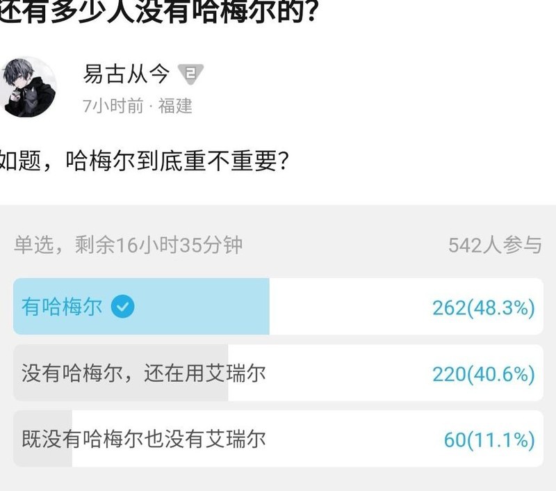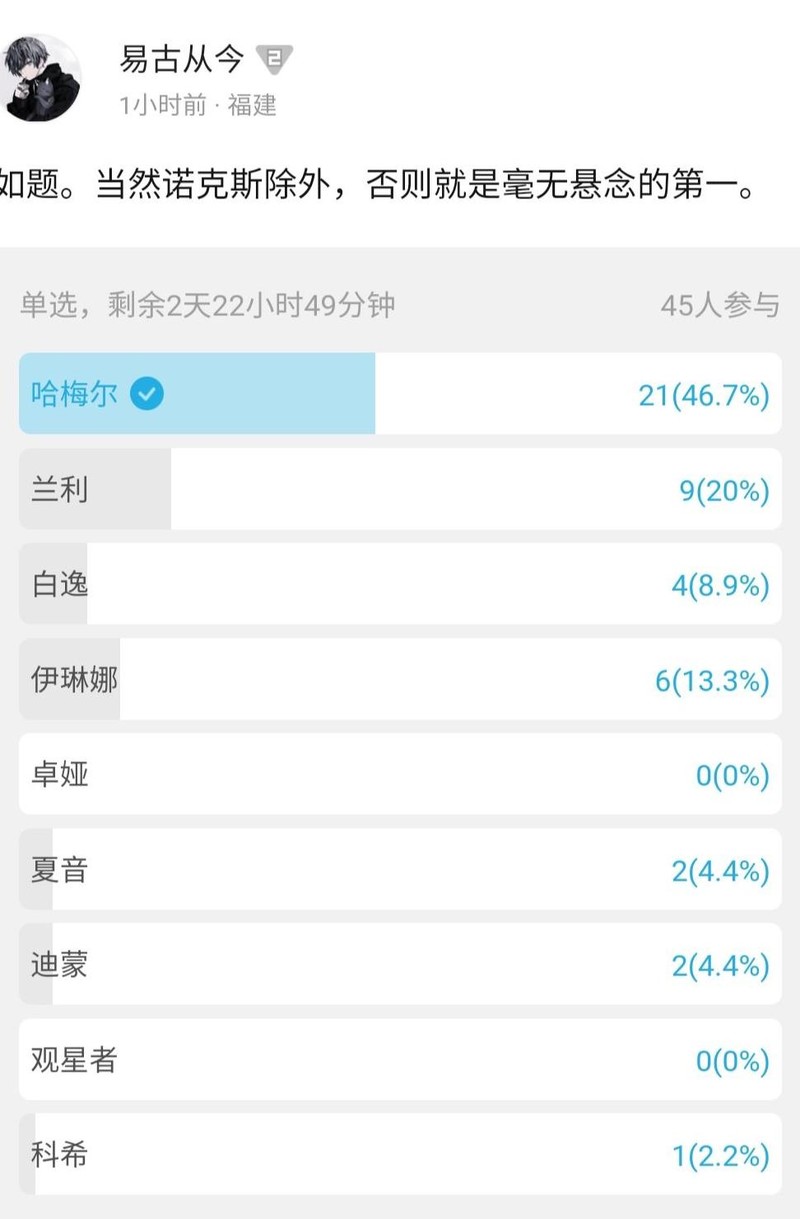 有人质疑哈梅尔,尽管我觉得她很强。为说服他们,我便在B站发起投票,想用数据证明她的实用性。