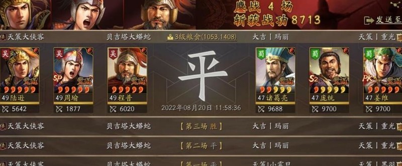 在高战区想要突破上万战功存在较大难度,主要原因在于对手普遍配置较高,满红队伍数量众多,竞争激烈。当前这套阵容实战效果较为稳定,多数情况下能打出7000至1.2万的战功表现。其主要局限在于共存性较差,尤其是社稷弓队伍对顶级战法依赖度高,通常需占用五到六个核心战法,难以与其他主流队伍实现高效共存。因此,在资源有限的情况下组建多队会受到一定限制。尽管如此,该阵容仍适合作为前期主力首发队伍使用,具备较强的输出能力和战场适应性。进入游戏后期,可根据自身武将和战法积累情况灵活调整配置,逐步搭配出三至五支队伍组合使用,提升整体作战效率与可持续发展能力。