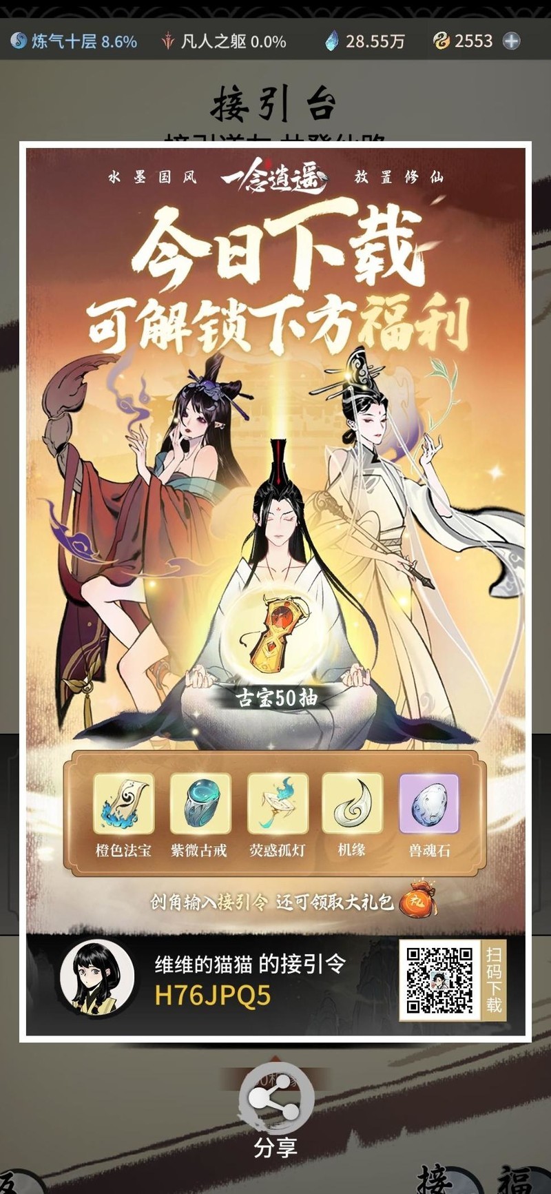 别忘了开局输入我的接引码,双方均可受益。