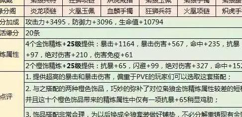 通过对比枭狼与天狐系列金饰品,可以看出两者在属性倾向上有明显差异。枭狼兵符主要提升输出类属性,在副本战斗中表现更为突出;而天狐兵符则侧重命中与闪避,更适合PVP对战。枭狼项链强化防御能力,天狐项链则更偏向闪避加成。两款戒指属性相近,但枭狼戒指在命中方面略有优势;玉佩方面,枭狼提供高额暴击与暴击伤害,天狐则兼顾暴击与命中。手镯与腰带部位,枭狼显著增强输出,天狐则以防御属性为主。整体来看,枭狼在1、4、5、6部位均围绕输出构建,而天狐则在防御与闪避上更具优势。因此,偏好副本挑战的玩家自然倾向于在这些位置选用枭狼套装。至于2、3部位,虽然原搭配天狐可激活17条缘分,但若统一使用枭狼,不仅能保持属性连贯性,还能额外激活1条缘分,达到18条。对于热衷副本、不追求排位竞技的玩家来说,选择全套枭狼装备无疑能最大化输出效率,是理想的搭配方案。