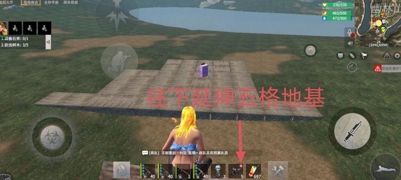 地基延伸完毕后,按图示安装下方墙壁