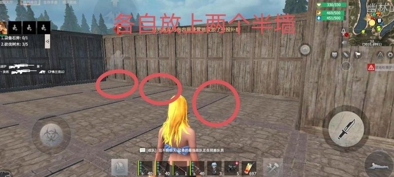 在图中画圈处各放置两块半墙