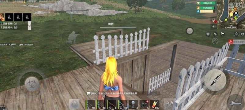 接下来到户外,参照小霖子图片中的样式,在指定位置安装白色围栏,请大家按图操作。