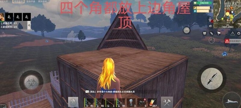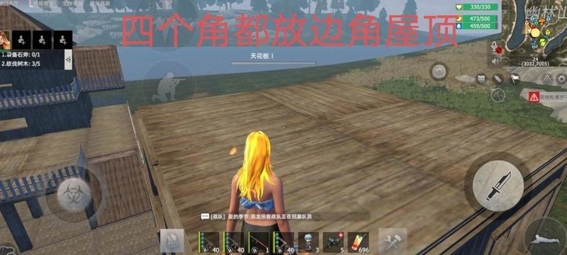 小伙伴们在楼顶2×2的小房间四角,整齐地安上了边角屋顶。