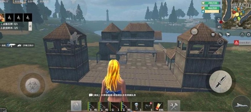 在小亭子前方空地,大家合力搭建起一座两乘两的迷你炮楼。