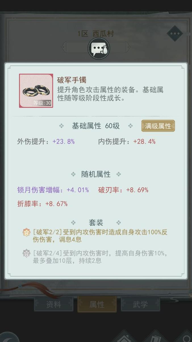 另一种推荐搭配是破刃与折膝组合,整体上限更高,实战表现可领先两个档次,但对装备要求极为苛刻。必须依赖完美属性的手镯,全服能满足条件的可能屈指可数。具体要求为:破刃与折膝总加成超过12%,且破刃单独高于6%。若不达标,实际效果往往还不如断腕断刃组合。