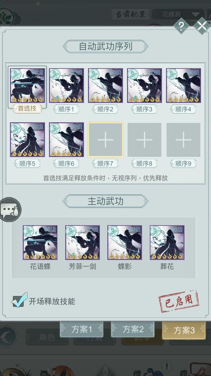 此阵容较为均衡,对轻剑门派更具优势,毕竟双方都在持续伤害,但对手的恢复速度远不及花语蝶两回合内兼具回血与护盾、总计回复20%生命值。对阵重剑流派时表现亦属不俗。若需更强压制力,可将首发花语蝶调整为鸟飞。