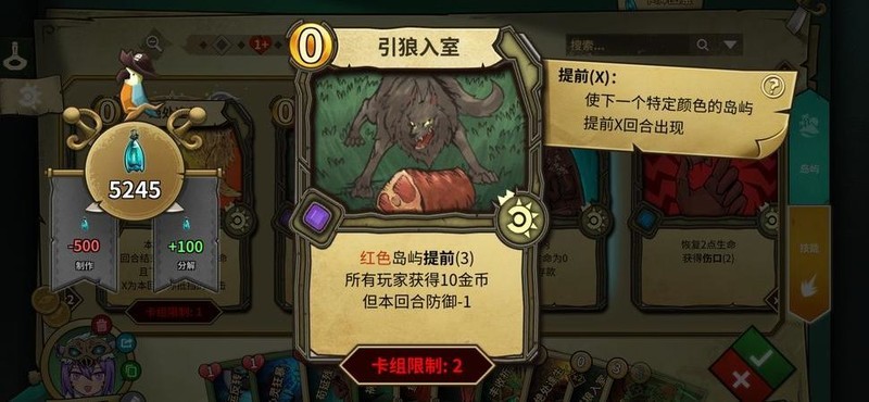 引狼入室(两张):配合红牌预判,降低防御,有护盾时可打消耗战;无红则出其不意,缺钱时刷过路费,核心在于预判爆发高额伤害。