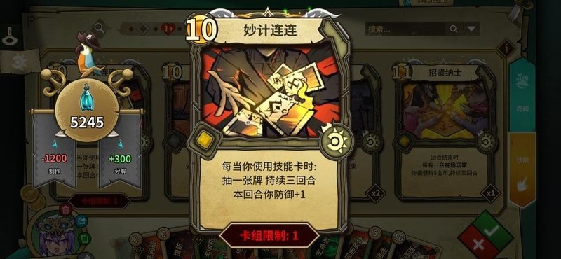妙计频出,抽牌加防,本回合稳守一盾。