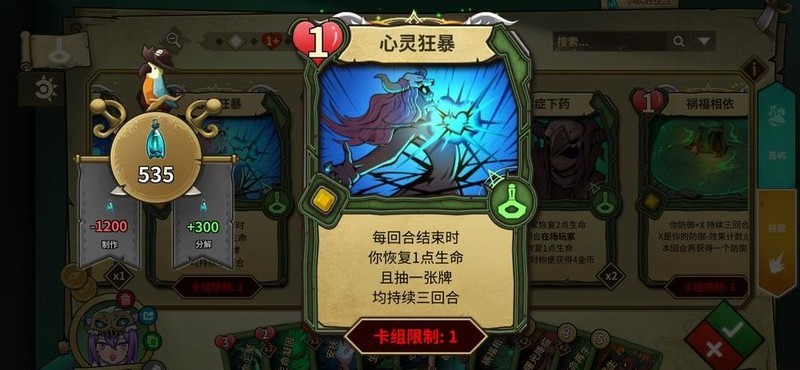 心灵狂暴:简单实用的抽牌卡,兼具回复效果。