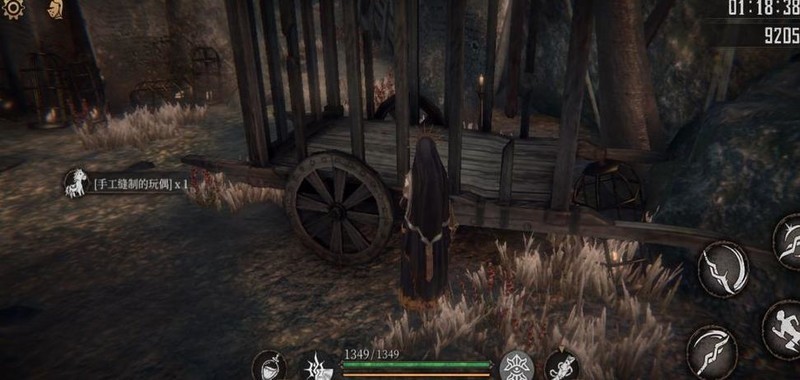 出小门后,左侧为祭坛,右侧笼中藏有任务物品。