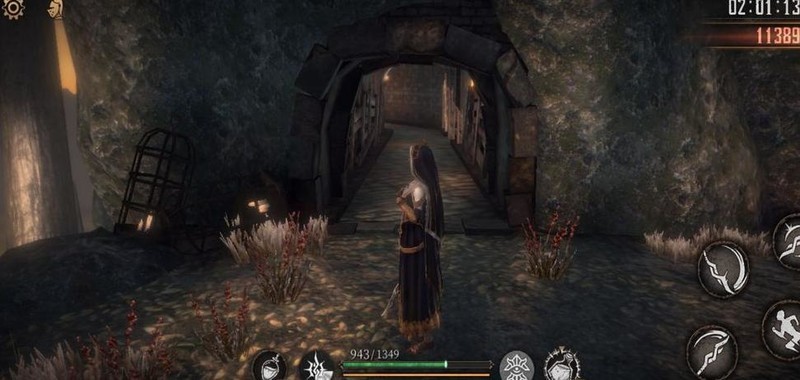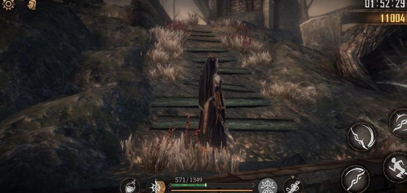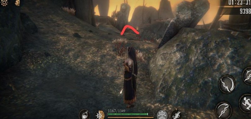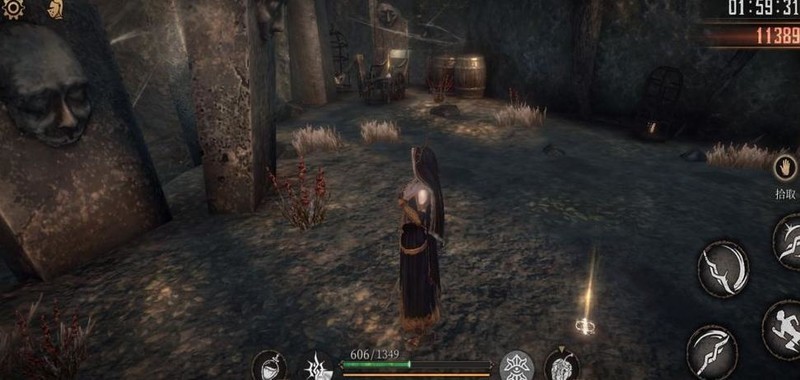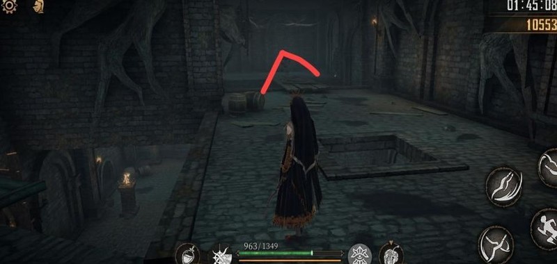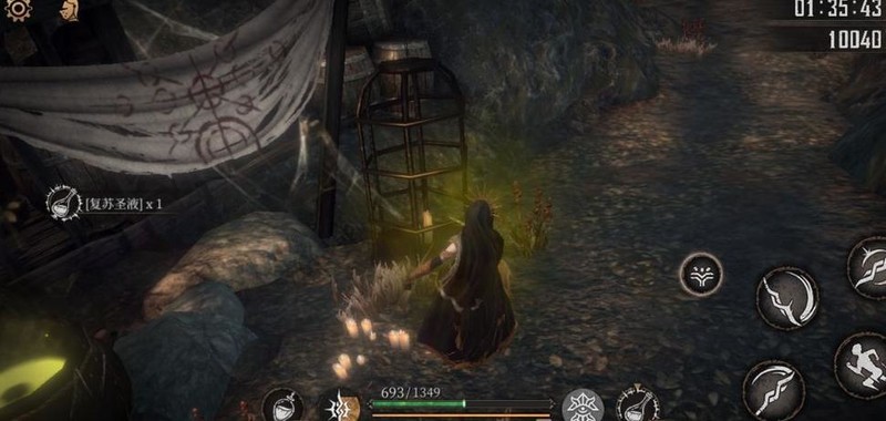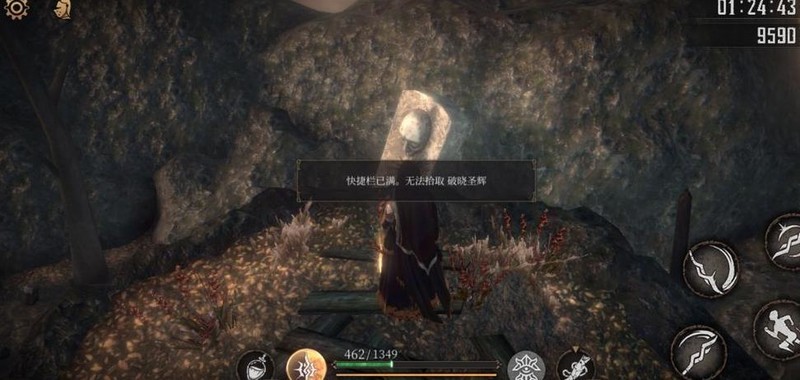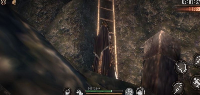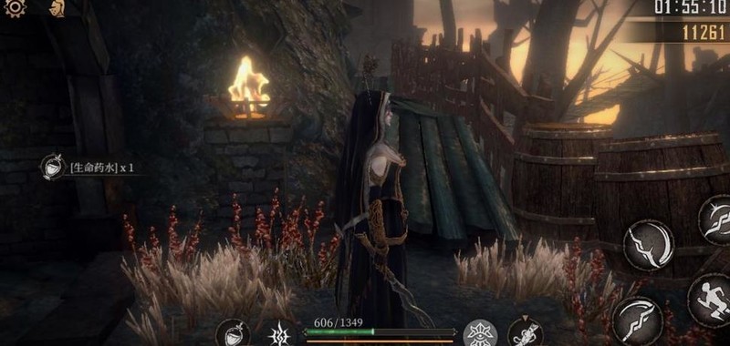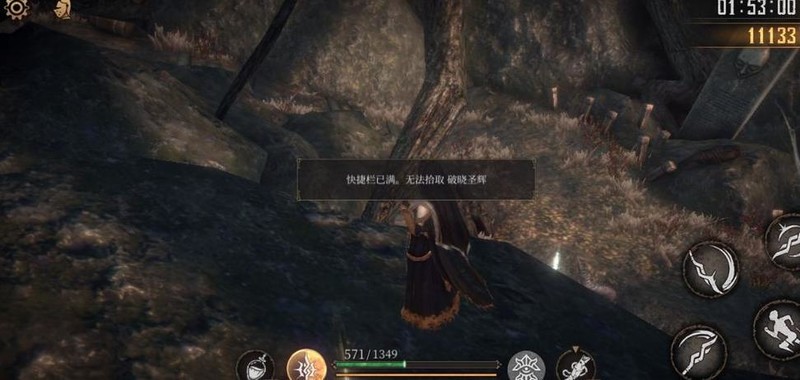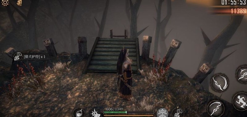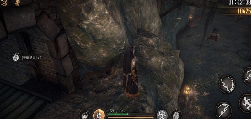 爬上梯子击败老太婆,获得破晓圣辉×1,随后从旁侧树木滑下可避免掉血。