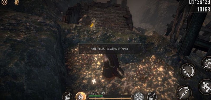 沿箭头前行,药汤旁拾取复苏圣液×1,击败弓手获岩化药丸×1,随后跳下祭坛存档。