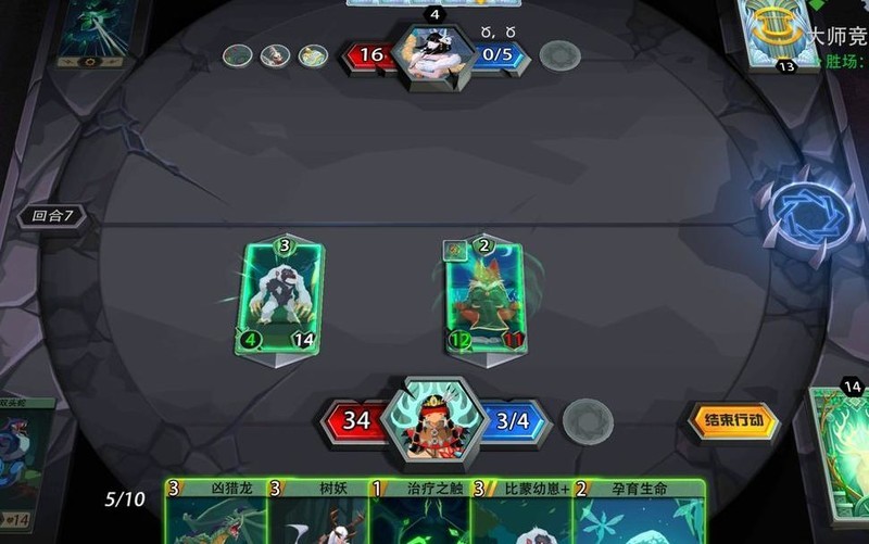 灵法狩猎者若不被解,依靠每回合稳定过牌与铺场,逐步压制即可取胜。
