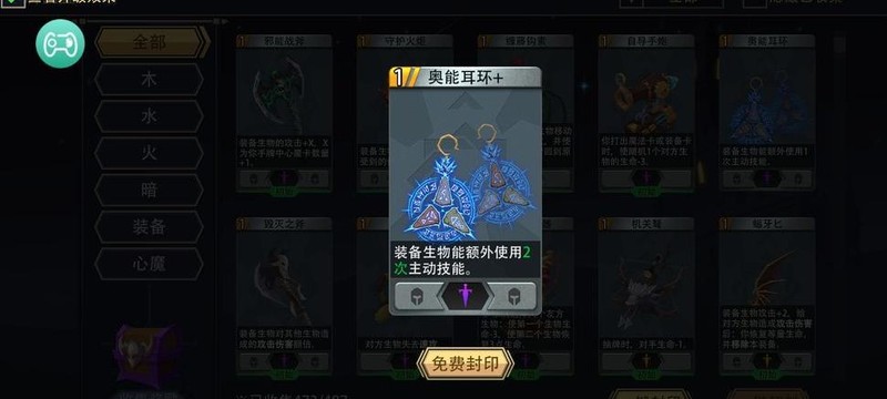 这是技能流玩家必备的生物装备,升级后可额外使用两次生物主动技能。配合核心生物灰寂咒术师与野蛮斗士技能升级后零消耗的特性,实现每回合免费释放技能,持续输出无压力。