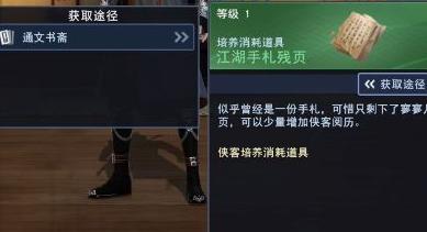 江湖手札按品质分为残页、断章、抄本与名篇,等级越高,侠客获取经验越多。需注意侠客等级上限受限于服务器等级,培养时应合理规划,避免过度升级导致经验溢出浪费资源。