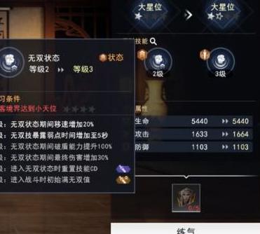 修炼后可增强属性并提升星位,不同星位赋予玩家更多样化的天赋能力。