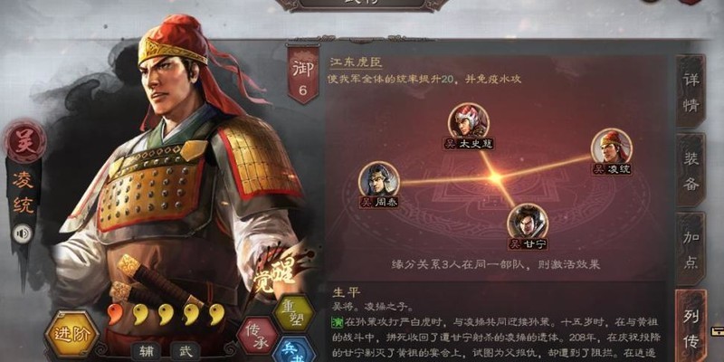 三国志·战略版新手入门攻略三十二:年少武勇!武将凌统简析。本文带你了解二线强将凌统的历史背景、属性战法、兵书搭配与实战阵容,看他如何在战场上以勇猛和忠诚脱颖而出。