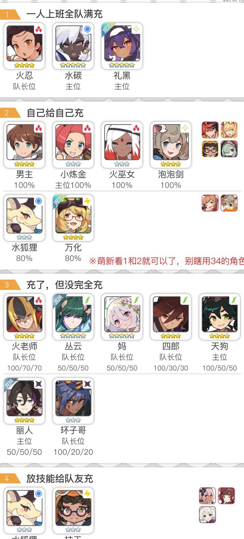 图示为充能辅助角色,所有角色功能均围绕快速充满能量,具体充能辅助角色如下: