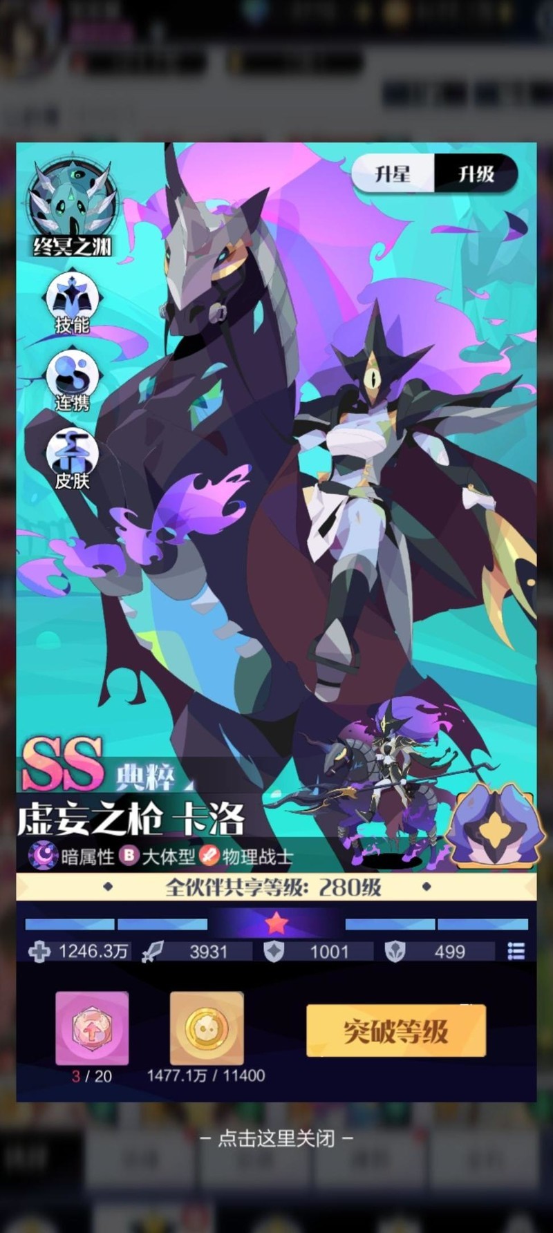 黑骑士卡洛带免死盾,前排作战攻防兼备。
