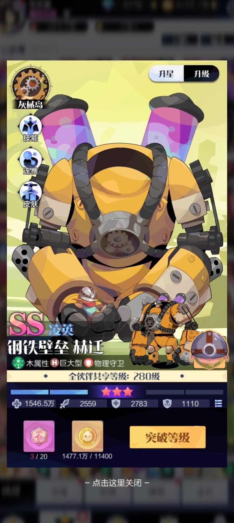 铁甲小宝前排无敌,萌新必备,抗打能力强,助你轻松闯关。