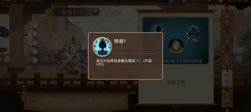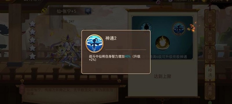 神通2:每级提升2%智力,最高40%,总计增加30%智力。