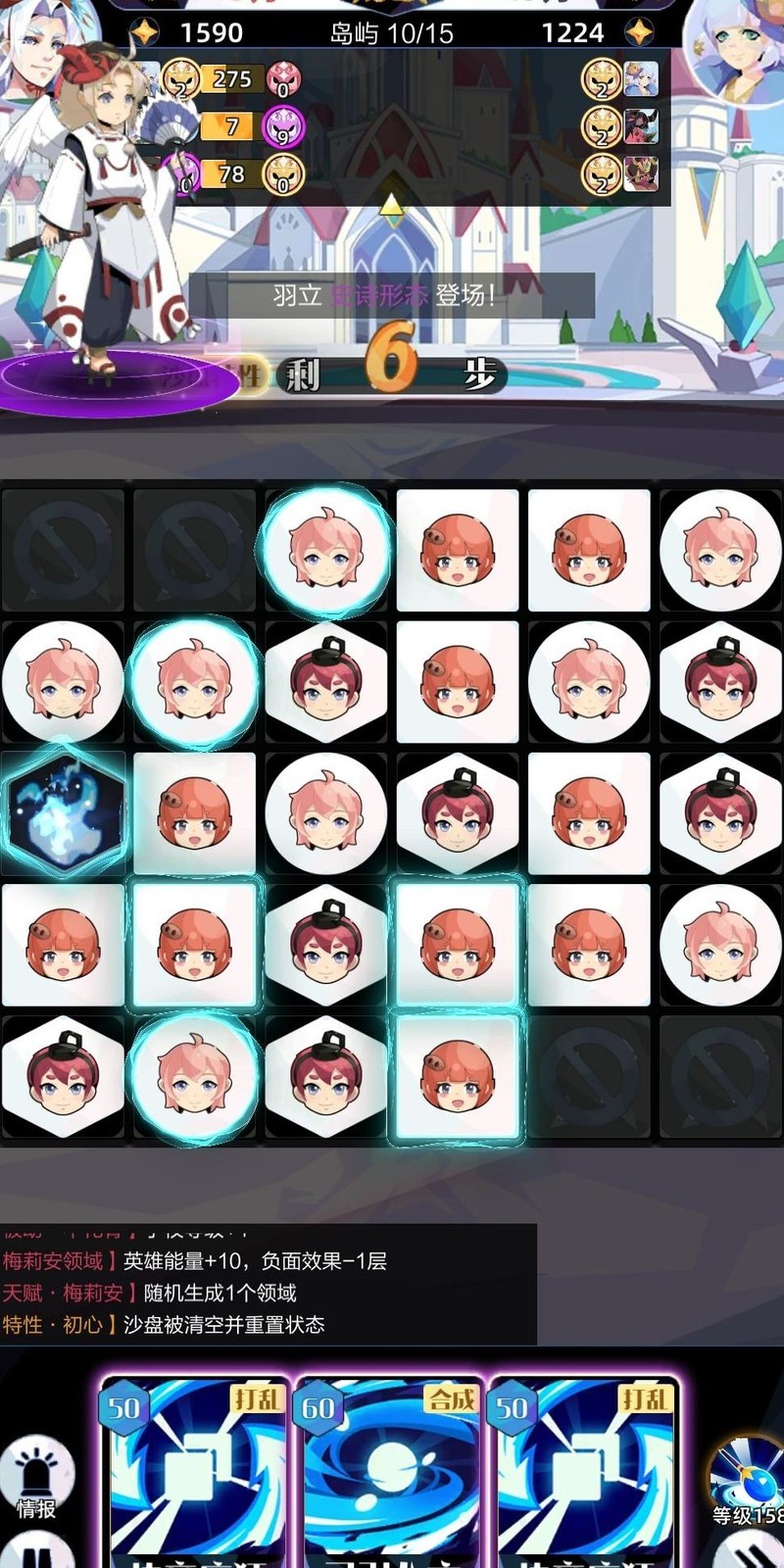 本关难点在于每回合沙盘都会重置,难以手动合成高级怪物,必须依靠技能生成史诗级怪物以提升战力。关键在于掌握英雄技能与沙盘的协同配合,尤其需留意技能中的特定细节。