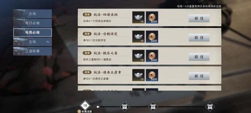 每周完成游戏中的所有可进行任务和玩法,即可获得大量银锭。银锭可用于购买体力,每日最多购买三次,每次增加100点体力。充足的体力能帮助玩家持续刷图、挑战Boss、推进任务并快速提升等级,是周常养成的重要环节。