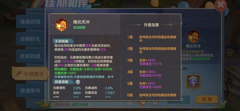 首先展示官方介绍。由于本次活动仅可兑换一只元素圣灵,本文将依据各元素在1级时的效果进行对比分析,确保评价的公平与公正性。
